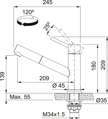 Swivel range 120 °